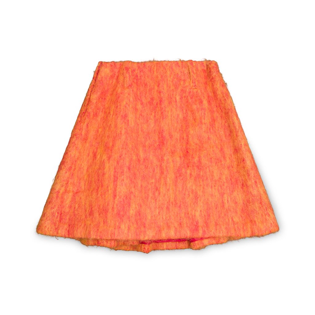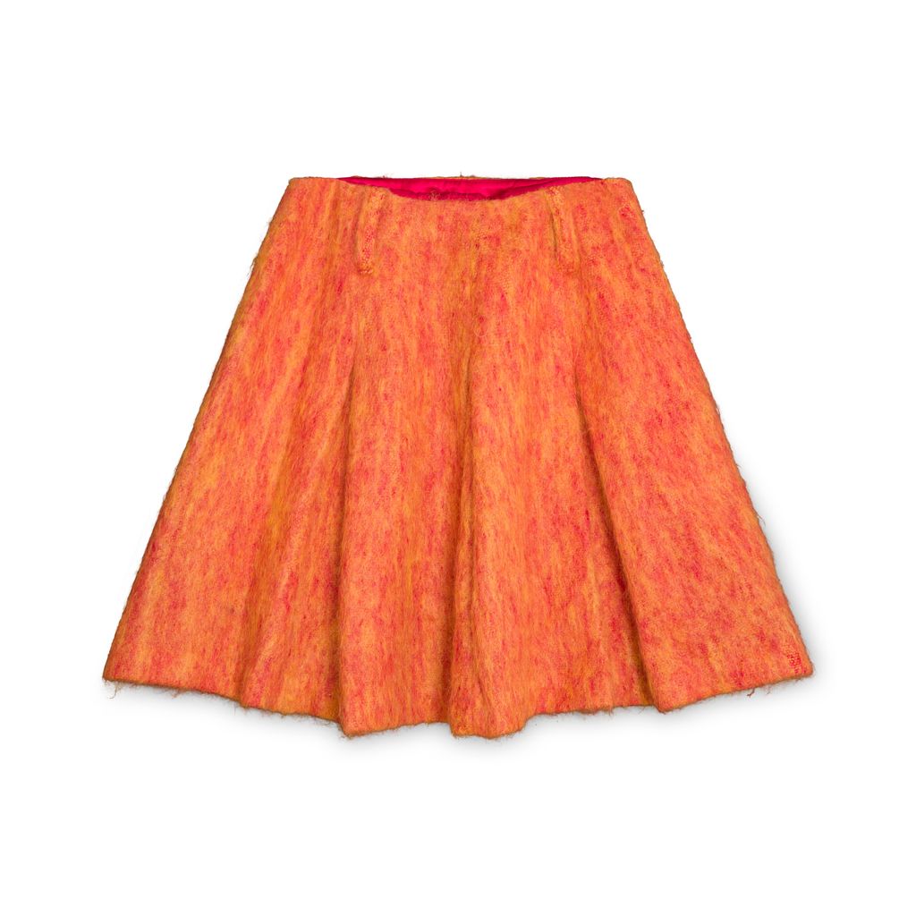 Anna Sui Mohair Skirt features red silk lining, belt loops, and pleated details. Side zipper closure.