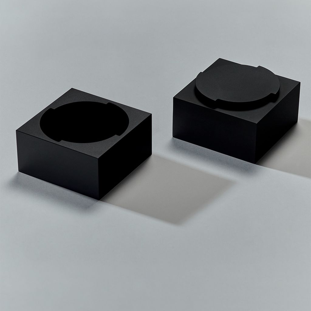 Drawing inspiration from aeronautics, "Lift Off" embodies a seamless fusion of aluminum, meticulously machined into two precisely interlocking blocks. This design concept mirrors the grace of a ship gently descending onto its base, evoking a sense of harmonious convergence. Materials: aluminium Colour & finish: anodized in deep Black Size: 10cm x 10cm x 10cm