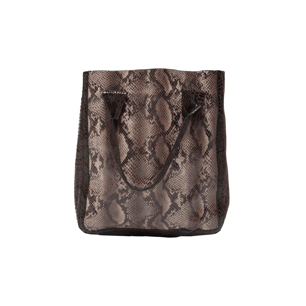 BCBG Crocodile Print Tote features crocodile embossed exterior with attached suede pouch.