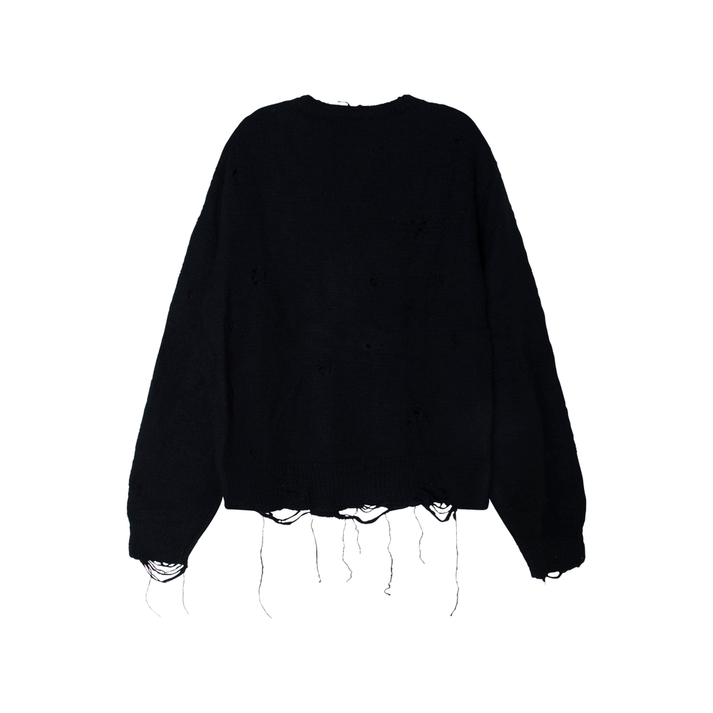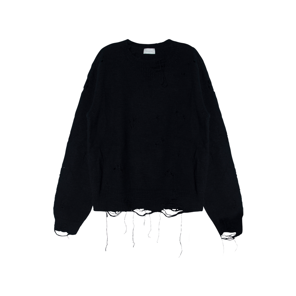Bed J.W. Ford Black Distressed Sweater features distressing along collar, hems, and throughout sweater.