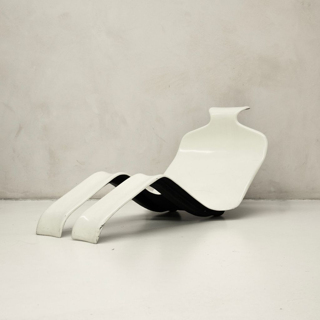 Bouloum Lounge Chair by Olivier Mourgue, 1970 features white tinted reinforced with fiberglass.