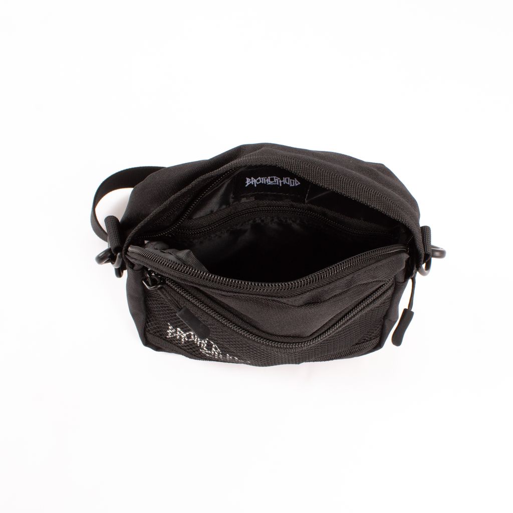 Never leave anything behind with this essentials bag from Brotherhood. Features zip top bag opening, mesh front pocket with zip closure, and adjustable bag strap.