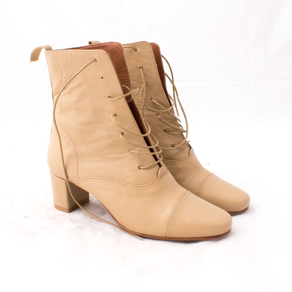Gently worn, the Lada lace-up boots put a modern spin on a classic Victorian silhouette. They are the perfect day-to-night option for any season. Wear them with cropped jeans or pretty dresses. 100% Italian soft leather, Insole 100% luxurious and extremely soft Italian polished goatling leather