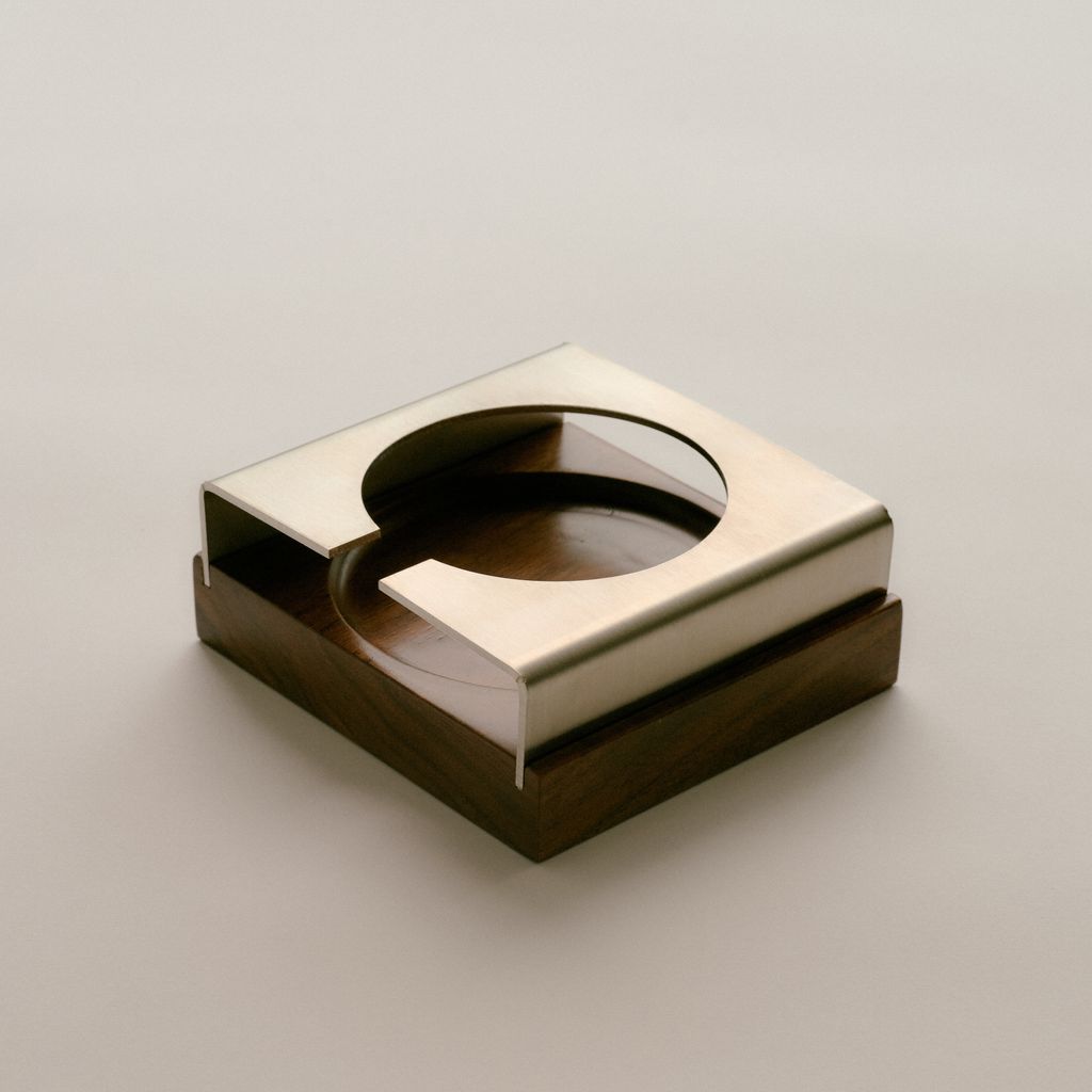2025. Stainless steel, solid walnut wood. This coaster is made to order.