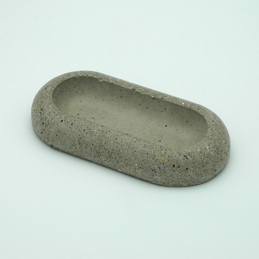 The piece is casted in concrete and hand sanded to a natural stone like satin finish.