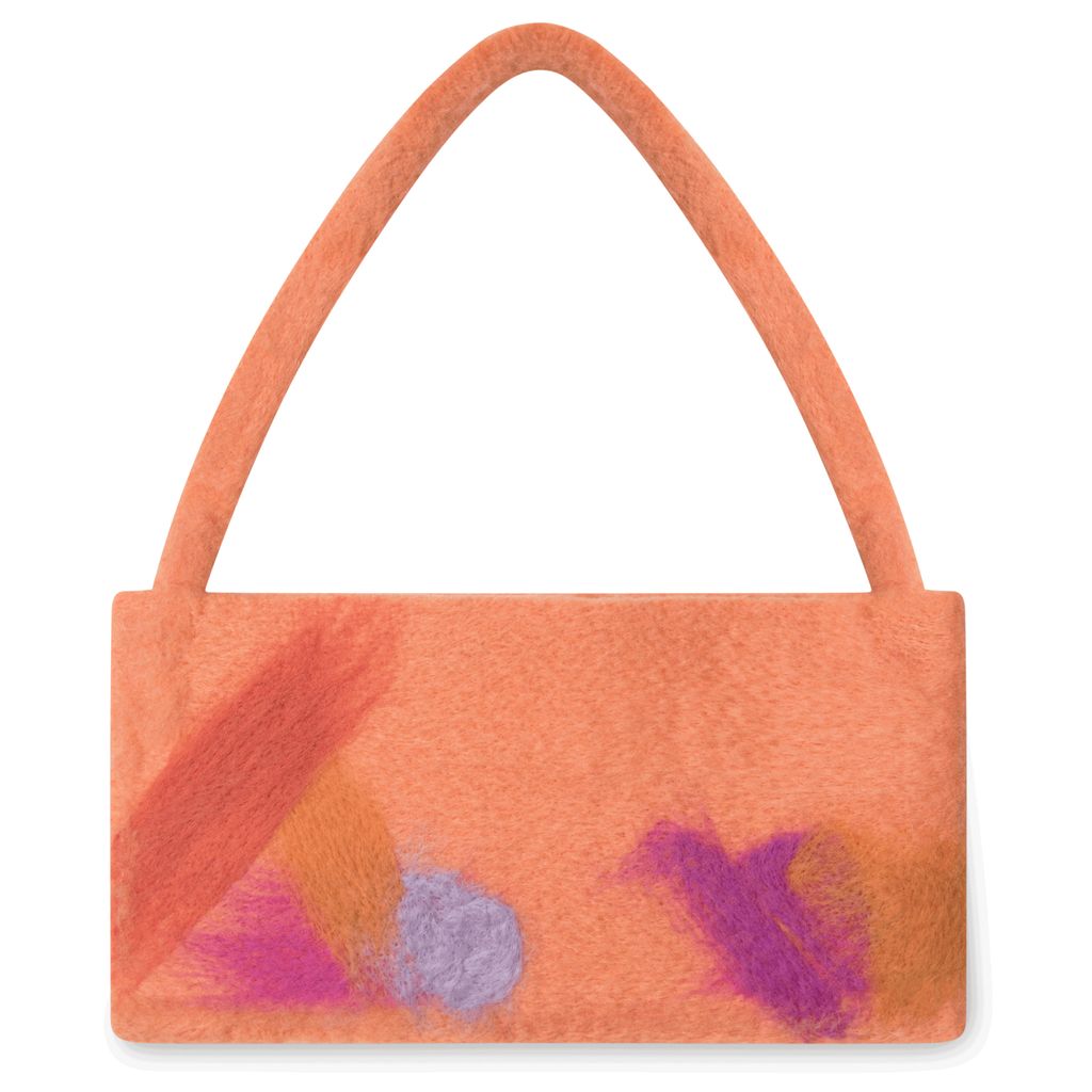 Squared off baguette style shoulder bag that can fit a phone, cardholder, headphones, and chapstick. Handmade in NYC using wool roving. Each bag is unique. Handle with care. Contains snaps for closure