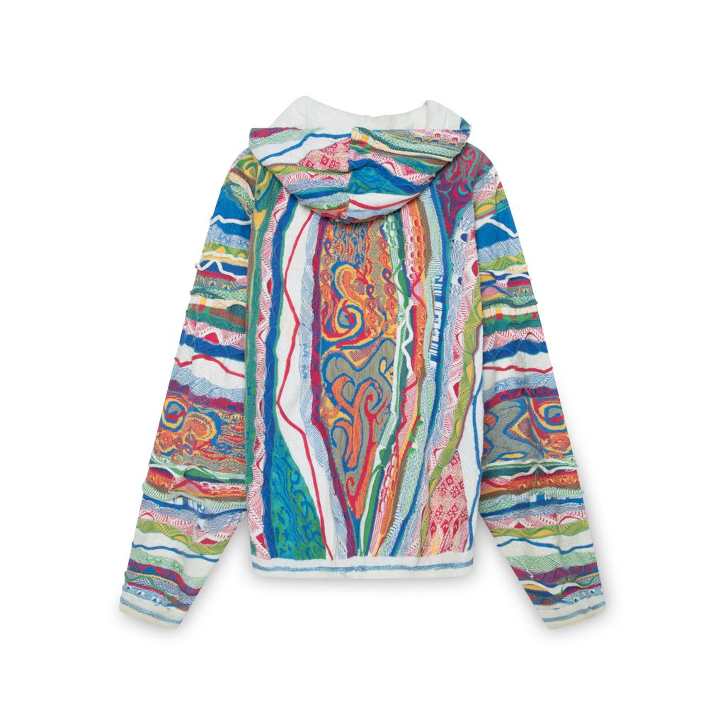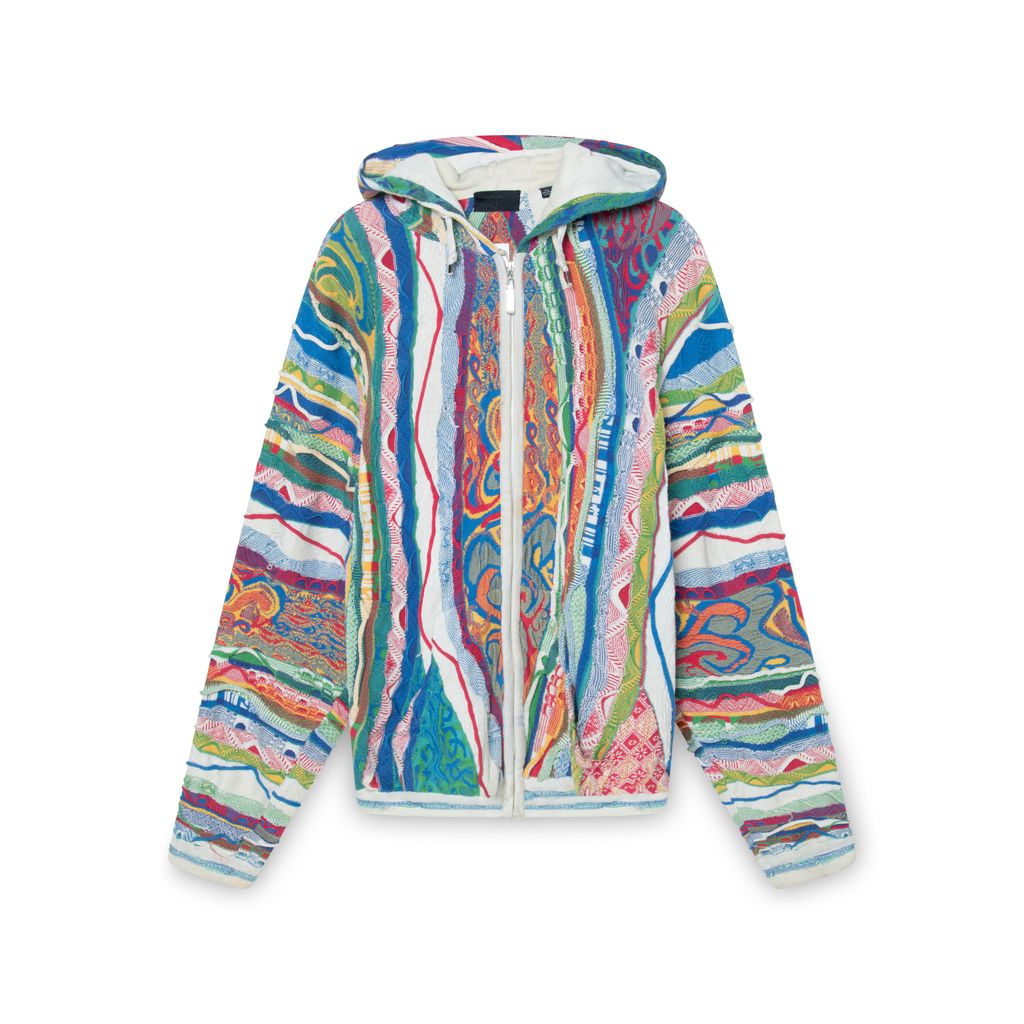 Coogi Zip Up Hoodie features hood drawstrings, 2 pockets, and a deeply textured weave.