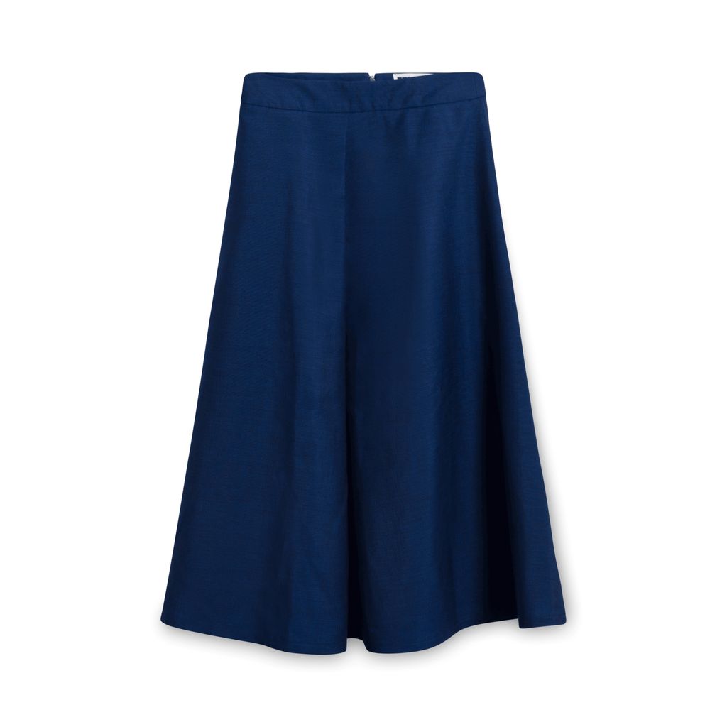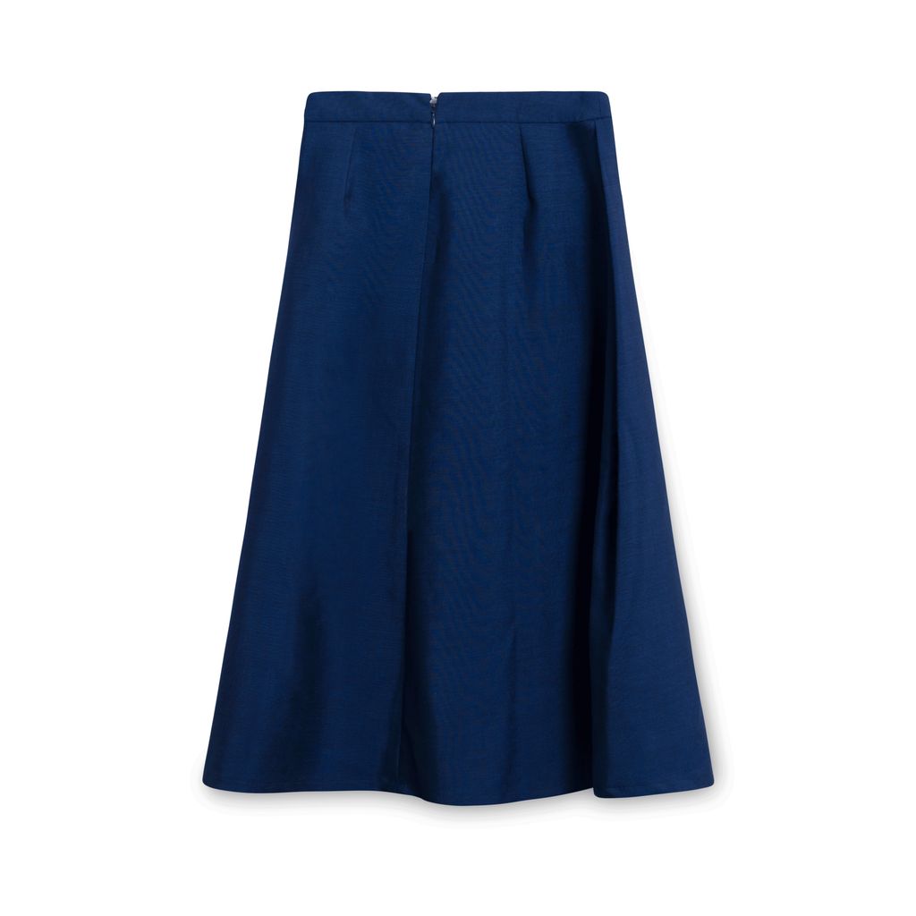 Etienne Deroeux Maxi Skirt in Blue features black zipper going down the right side.