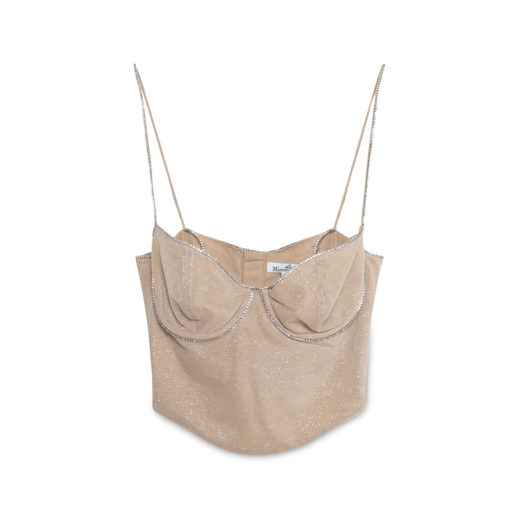 Fairy Top in Diamond Sand features boning at side seams, hook and eye back closure, and power mesh lining.