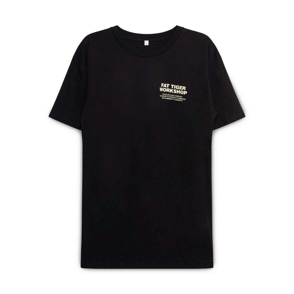 Fat Tiger Workshop- The Black Idea Company Tee features crew neck line and screen printed graphics