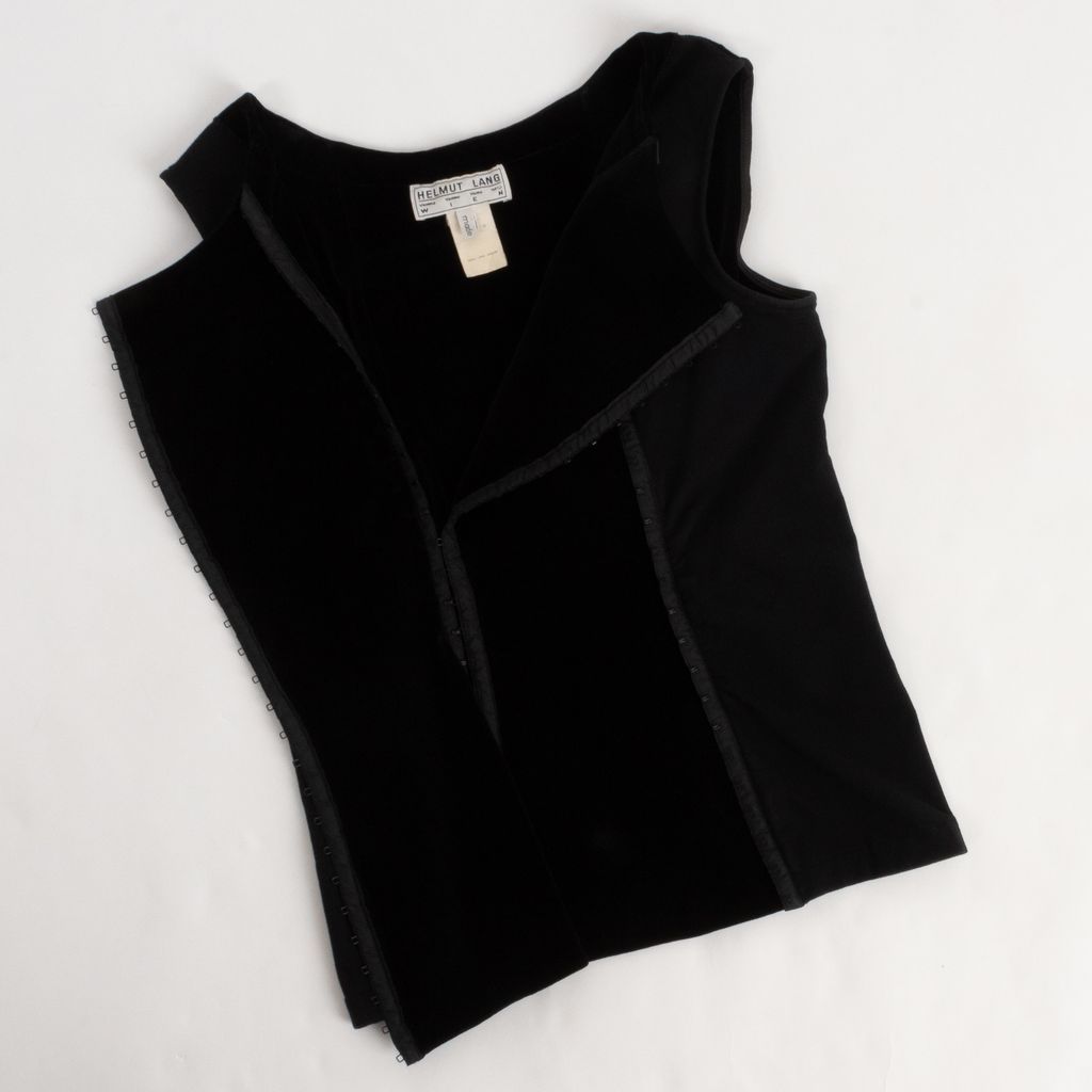This stylized vest from Helmut Lang is giving us major futuristic vibes. Layer over a collared shirt to match the minimalist aesthetic or experiment with a PVC skirt for extremely chic vibes.