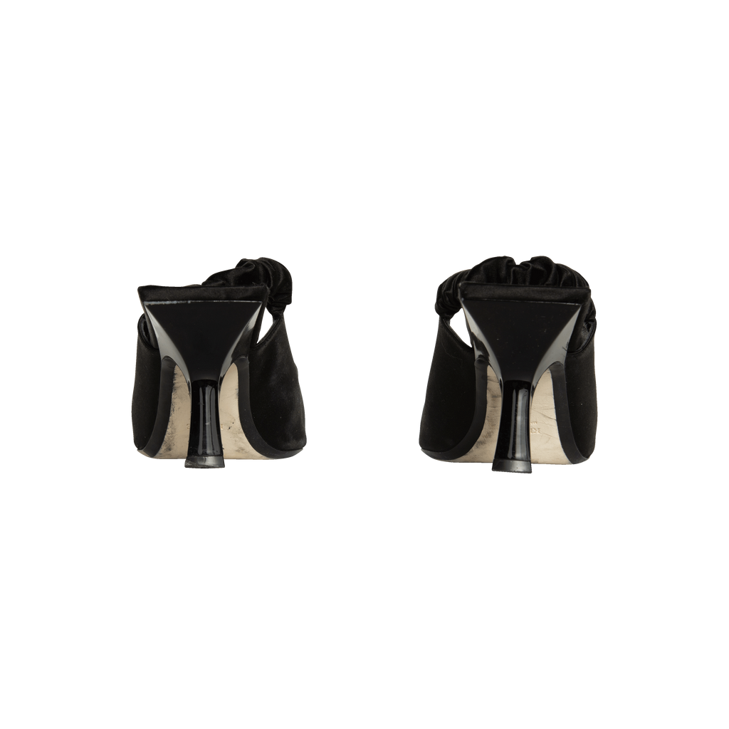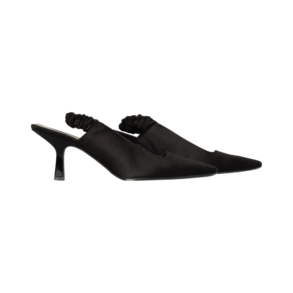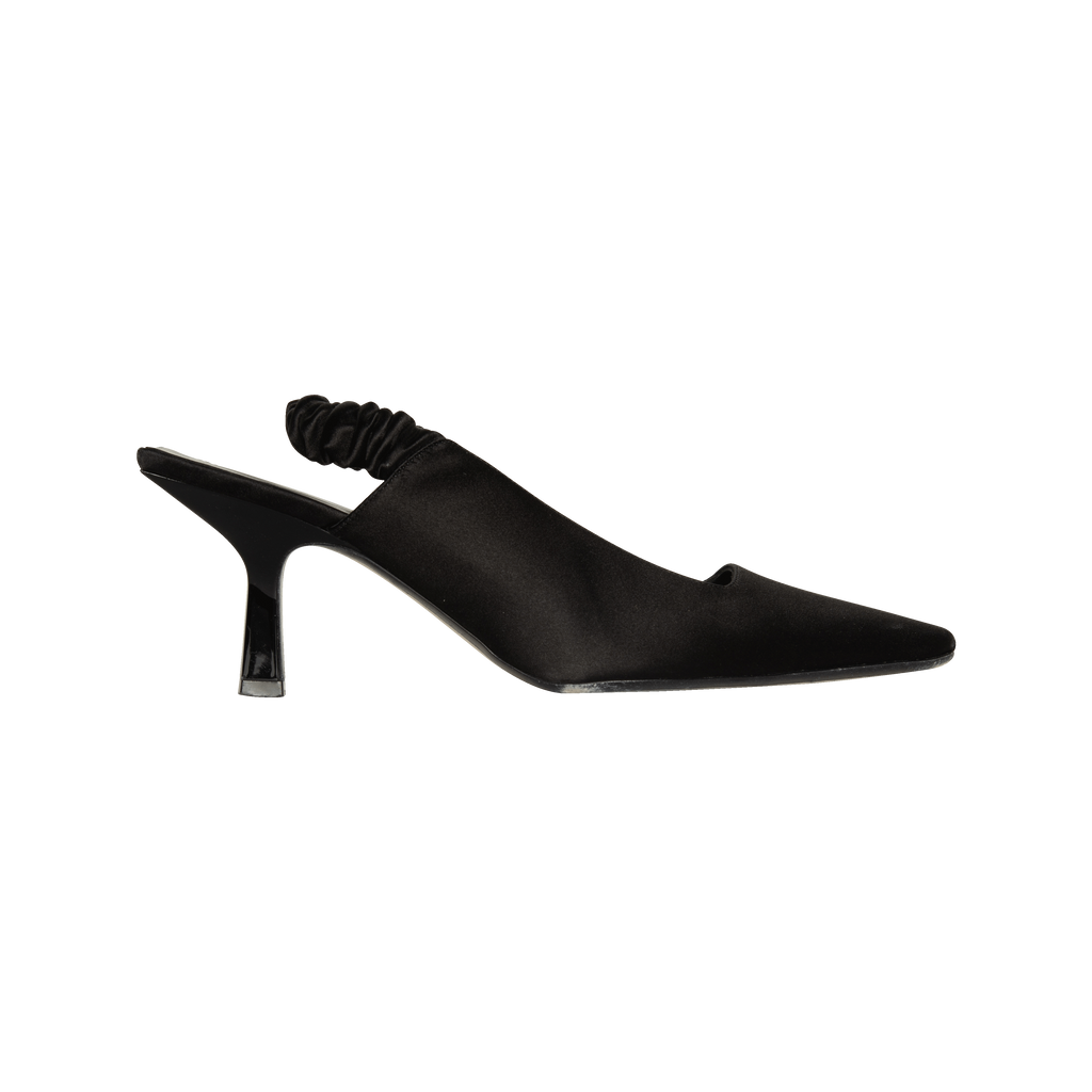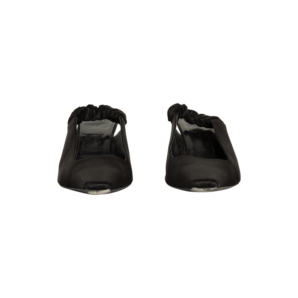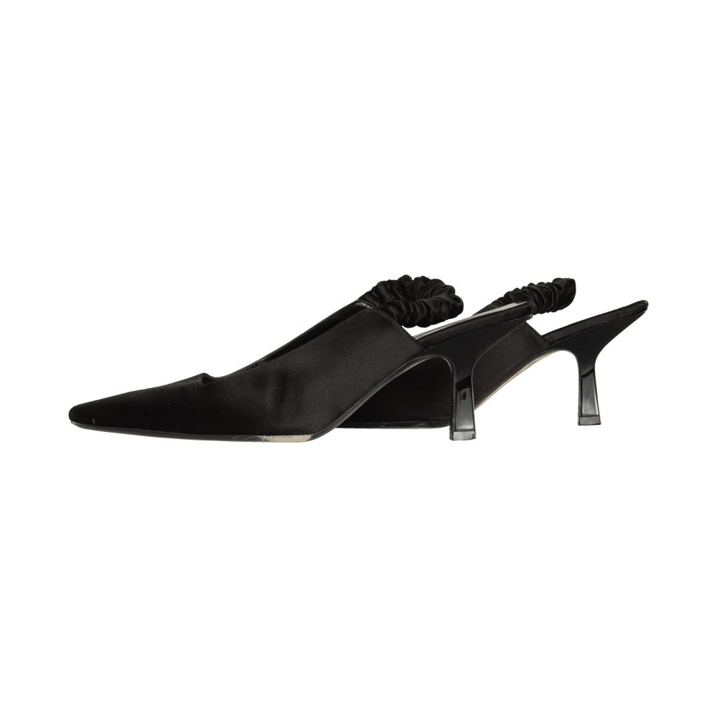 Khaite Black Slingback Heels features squared heel and satin material.