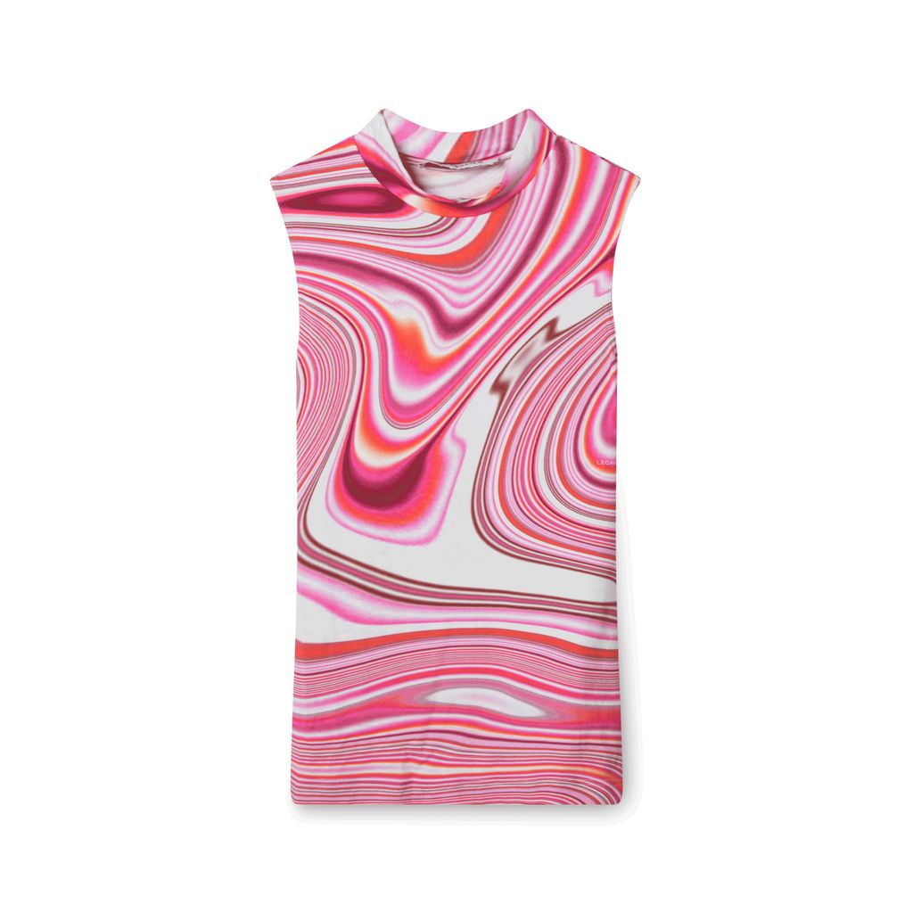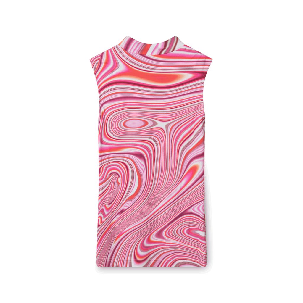 Lecavalier mock neck tank features multicolor swirl pattern.