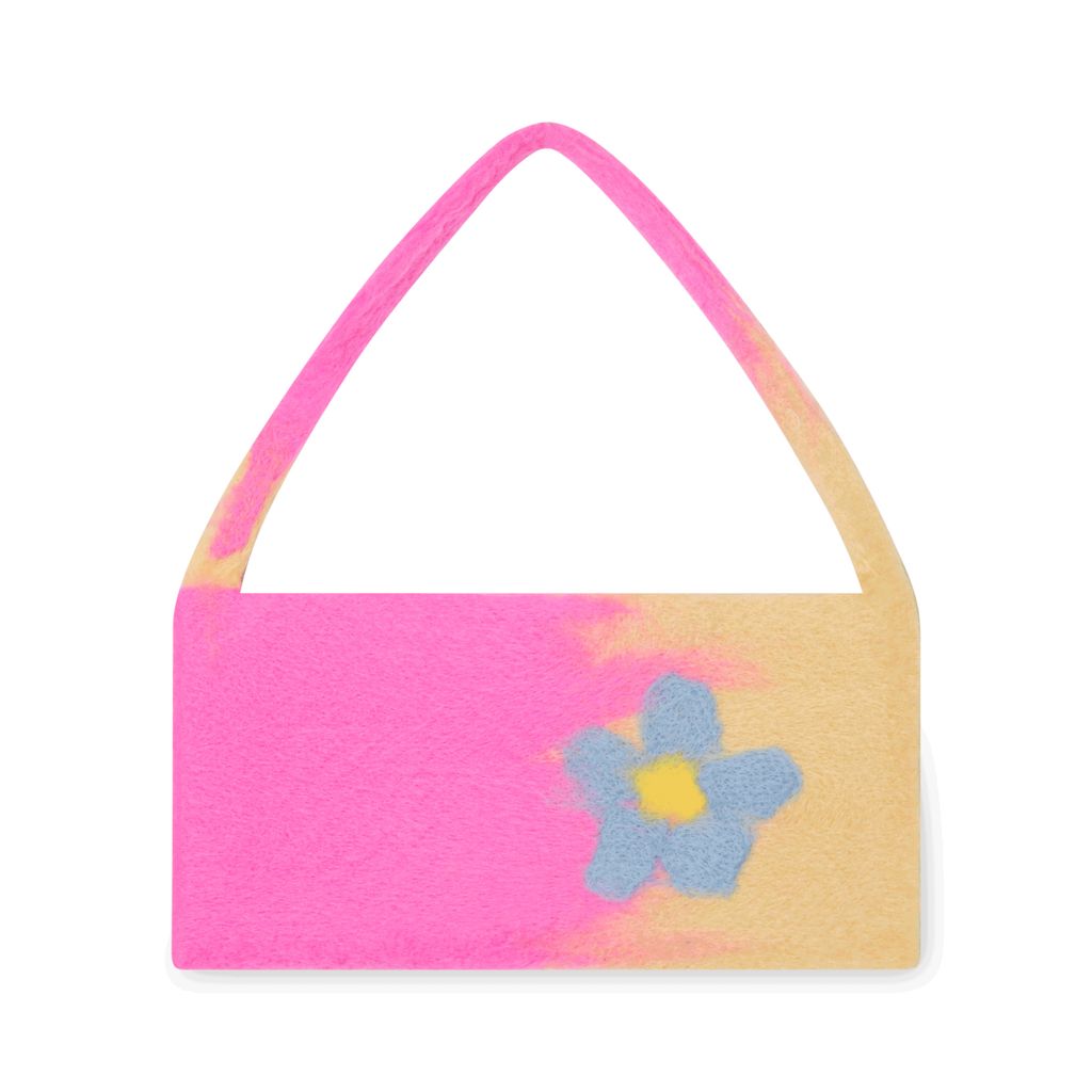 Squared off baguette style shoulder bag that can fit a phone, cardholder, headphones, and chapstick. Handmade in NYC using wool roving. Each bag is unique. Handle with care. Contains snaps for closure