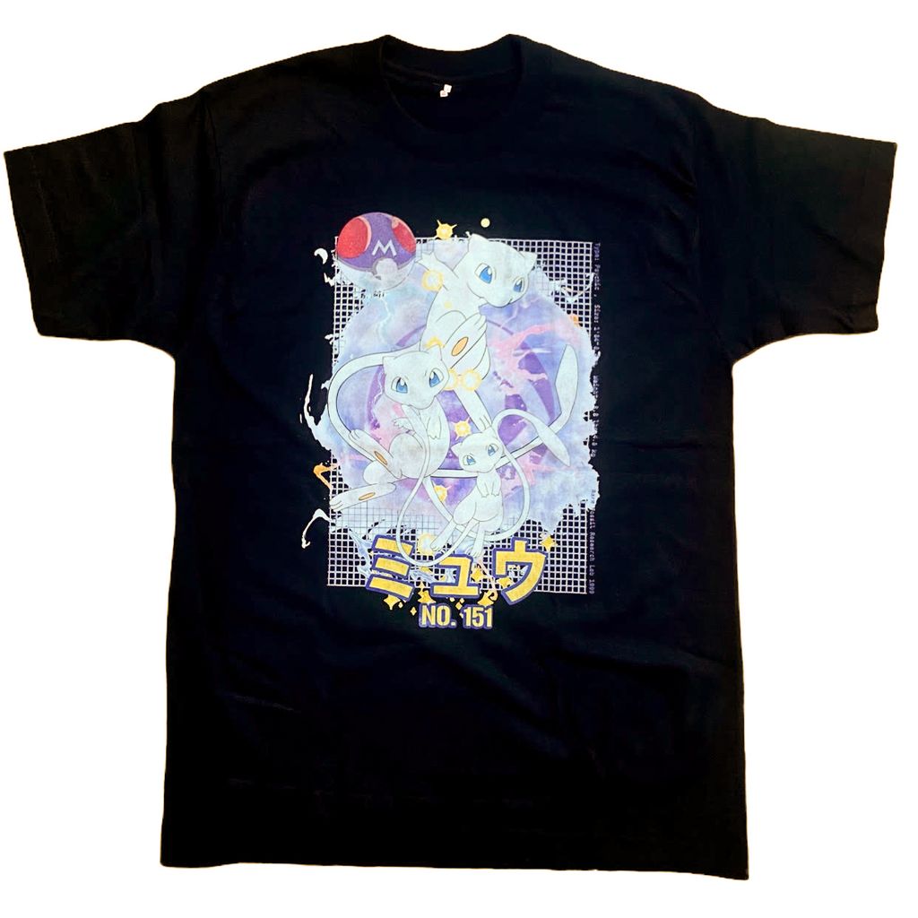 The “Mew” t-shirt. Inspired by the 151st Pokémon the “Mew” t-shirt features a full graphic design featuring Mew in different poses while also displaying some of the main stats for the Pokémon. Each “Mew” t-shirt is packed with one random reverse holographic Pokémon card