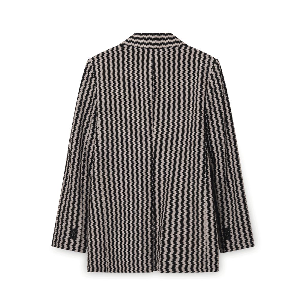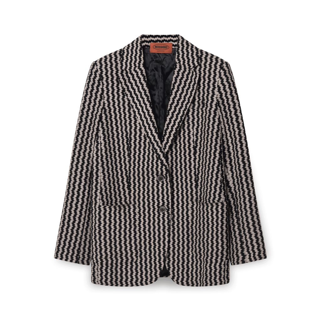 Missoni Black and Cream Houndstooth Blazer features black button enclosures and dual pockets.