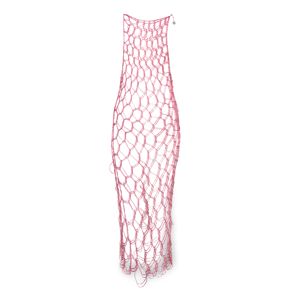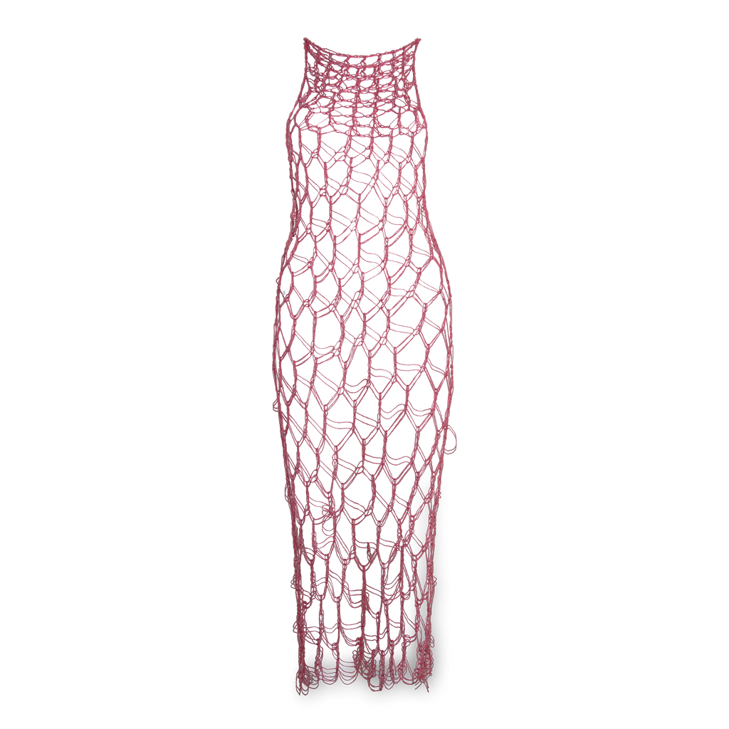 Net Dress - Pink is a hand crocheted mesh dress made with cotton blend. One size, great stretch.