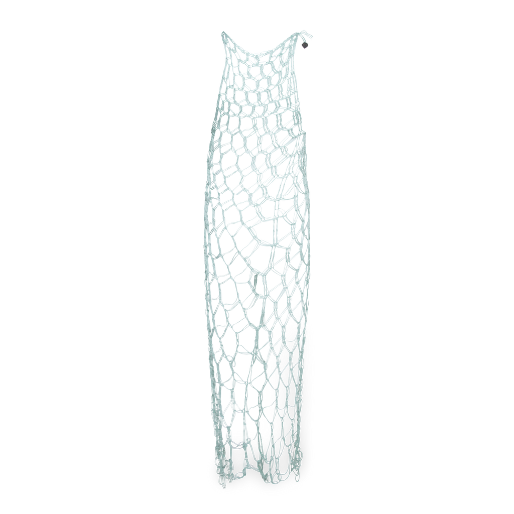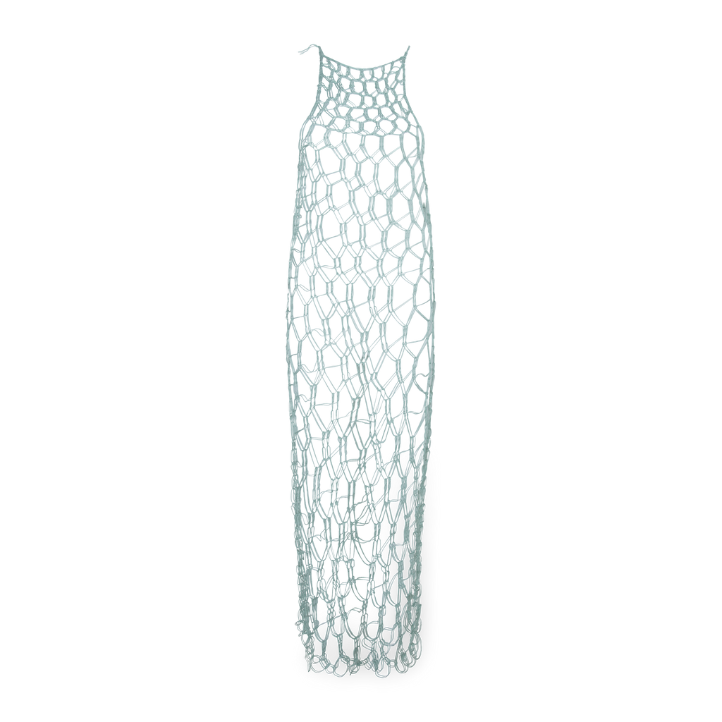 Net Dress - Seafoam Green is a hand crocheted mesh dress made with cotton blend. One size, great stretch.