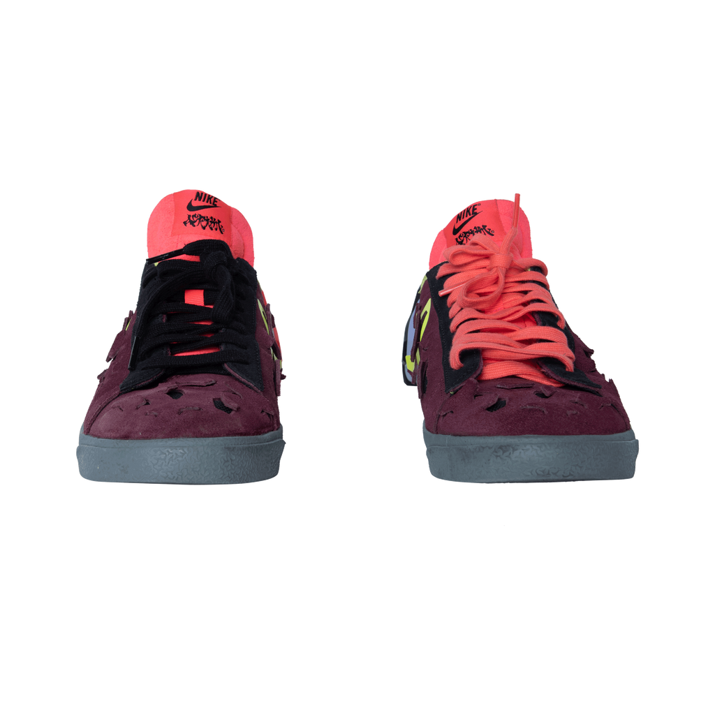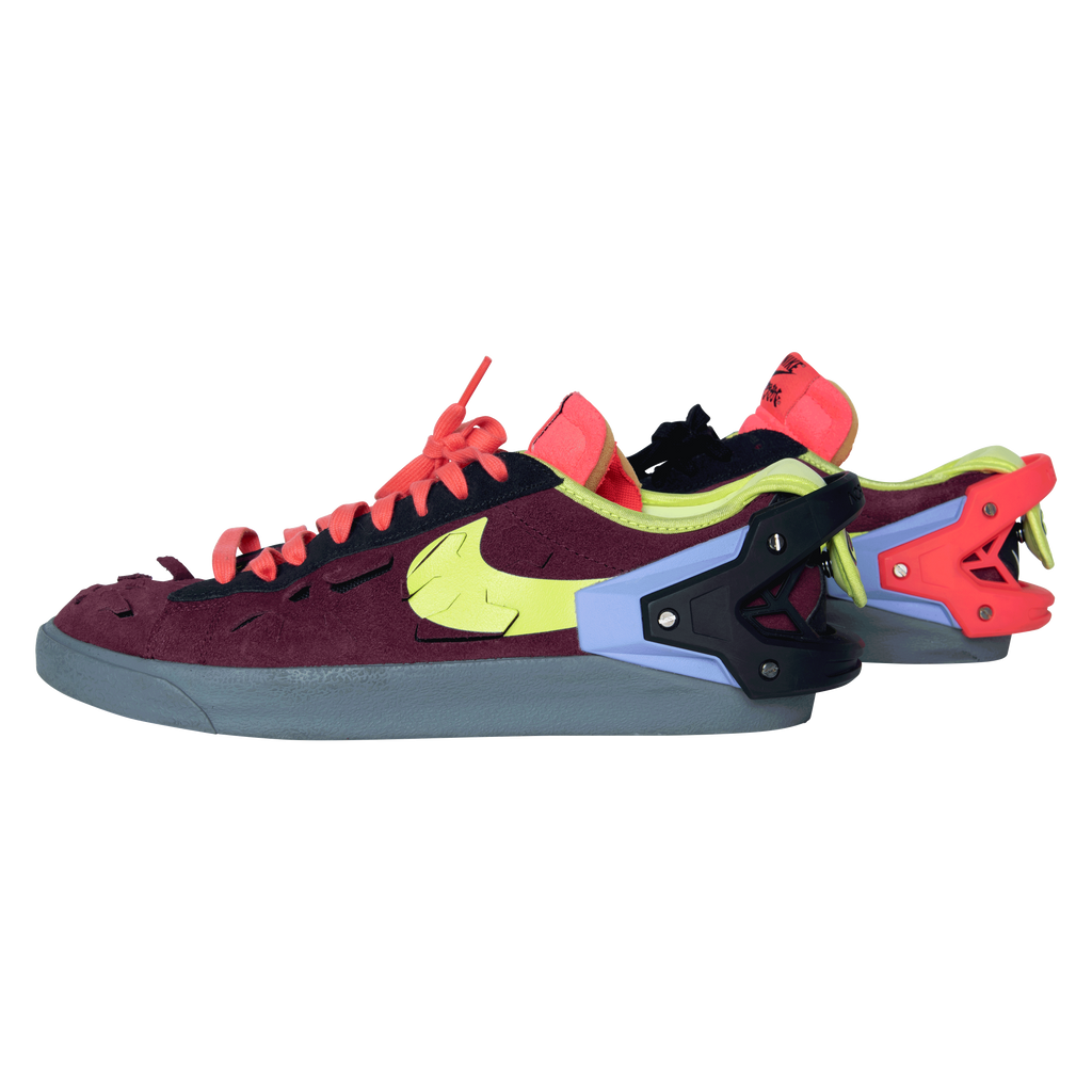 Nike x Acronym Blazer Low features round toe, front lace closure, exposed foam tongue, herringbone rubber outsole, removable TPU heel clips and laser-cut details.