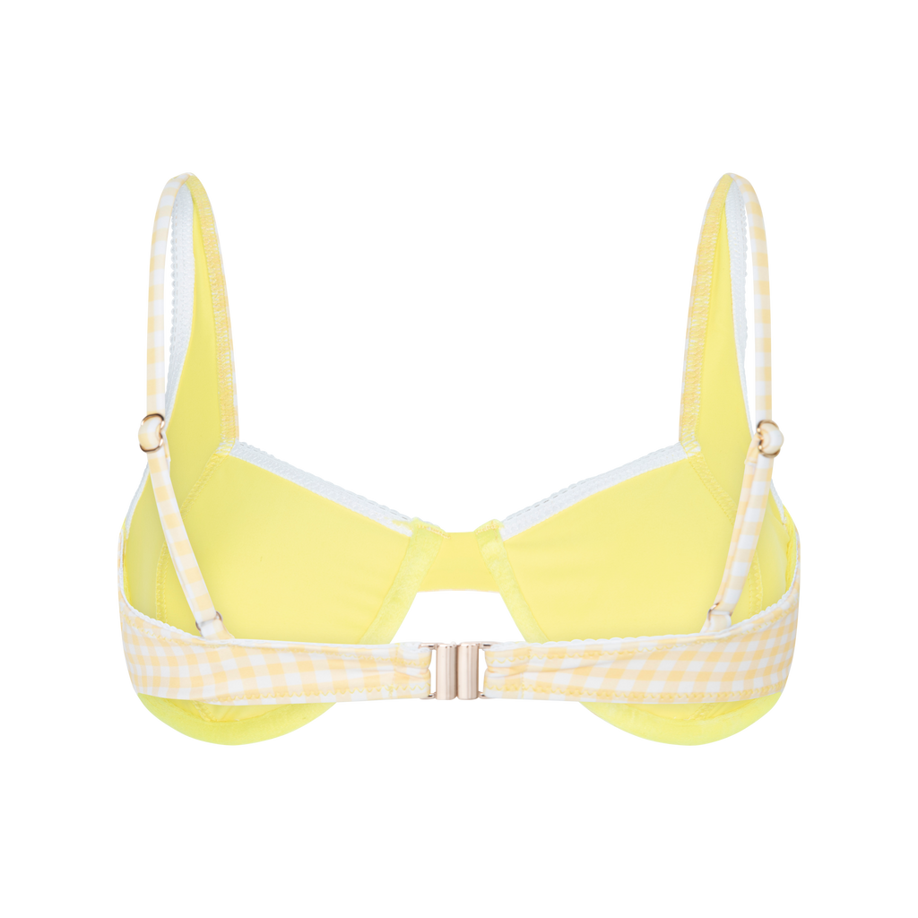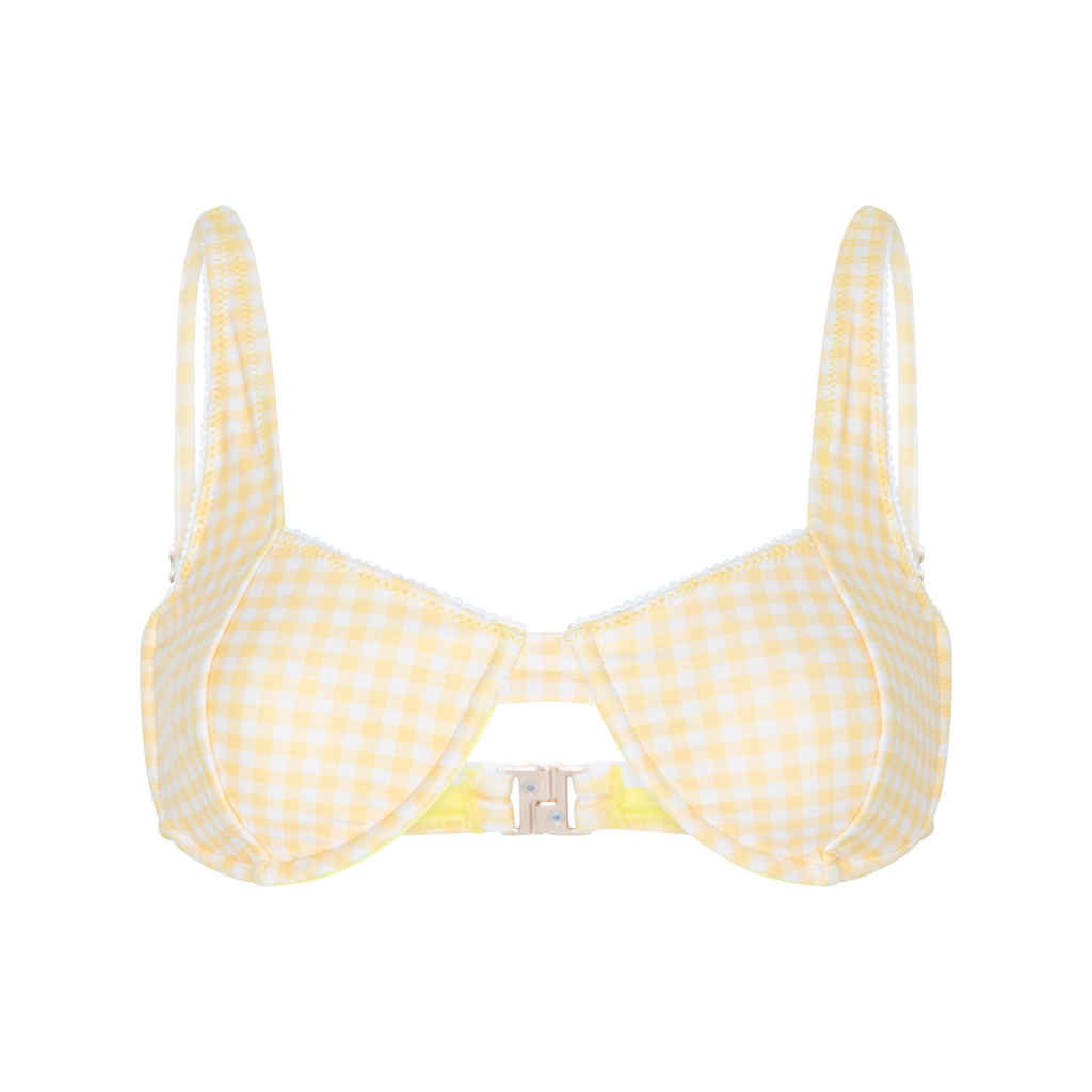 Pamela Underwire Bikini Top features structured underwire and lace details.