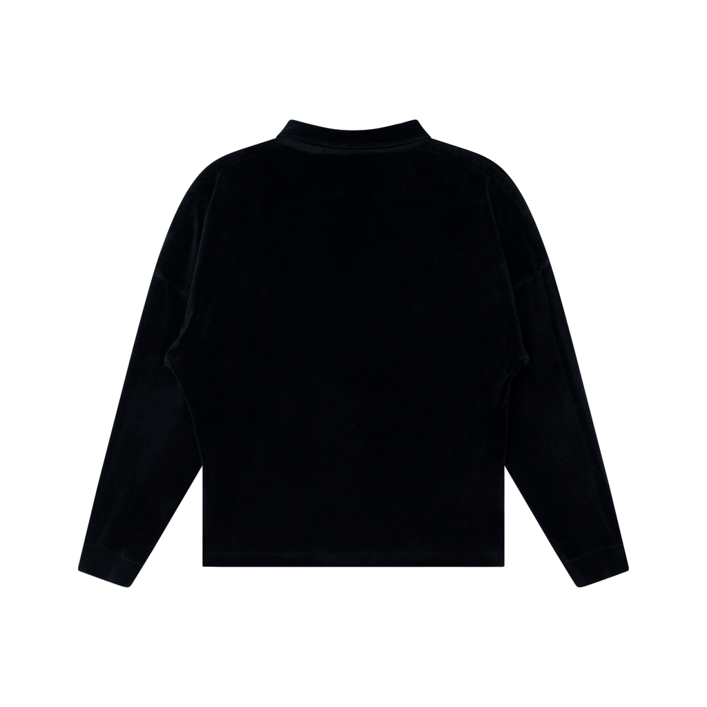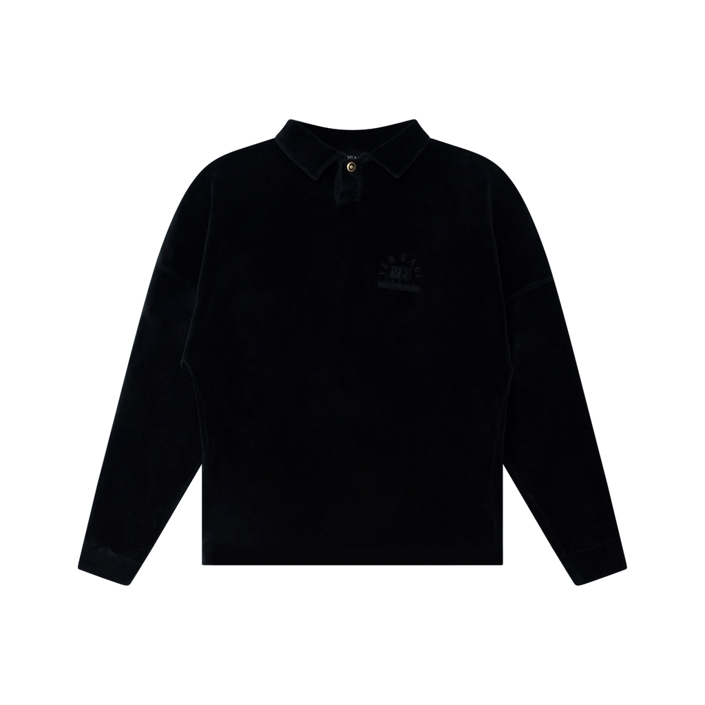 Versace Classic V2 Black Long Sleeve features single gold button at collar and logo embroidery at chest.