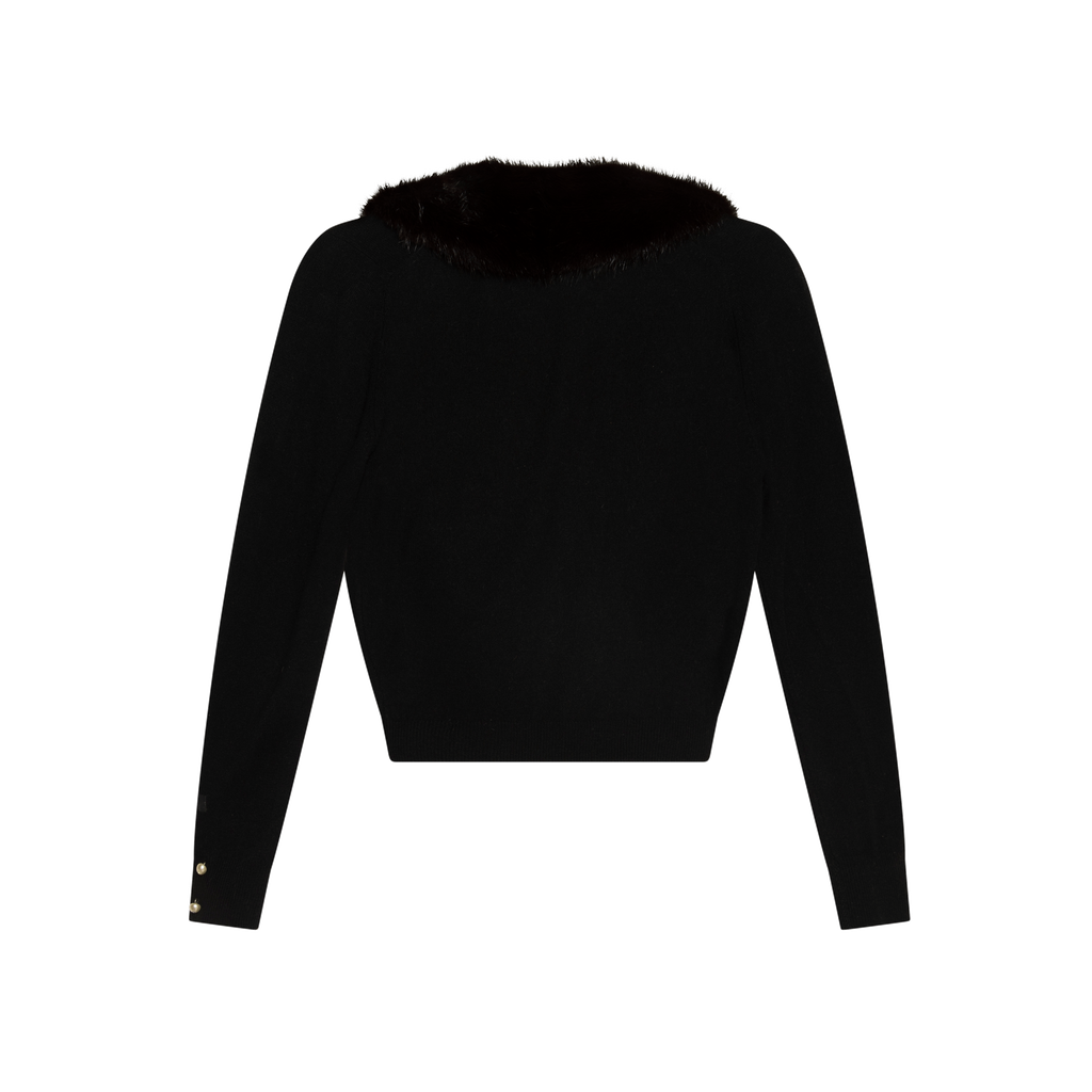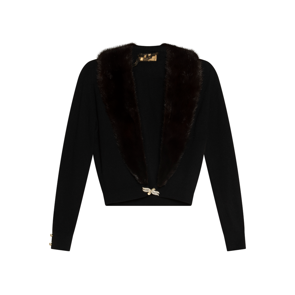 Vintage Cashmere Lapel Sweater features mink detail, beaded detail at cuffs.
