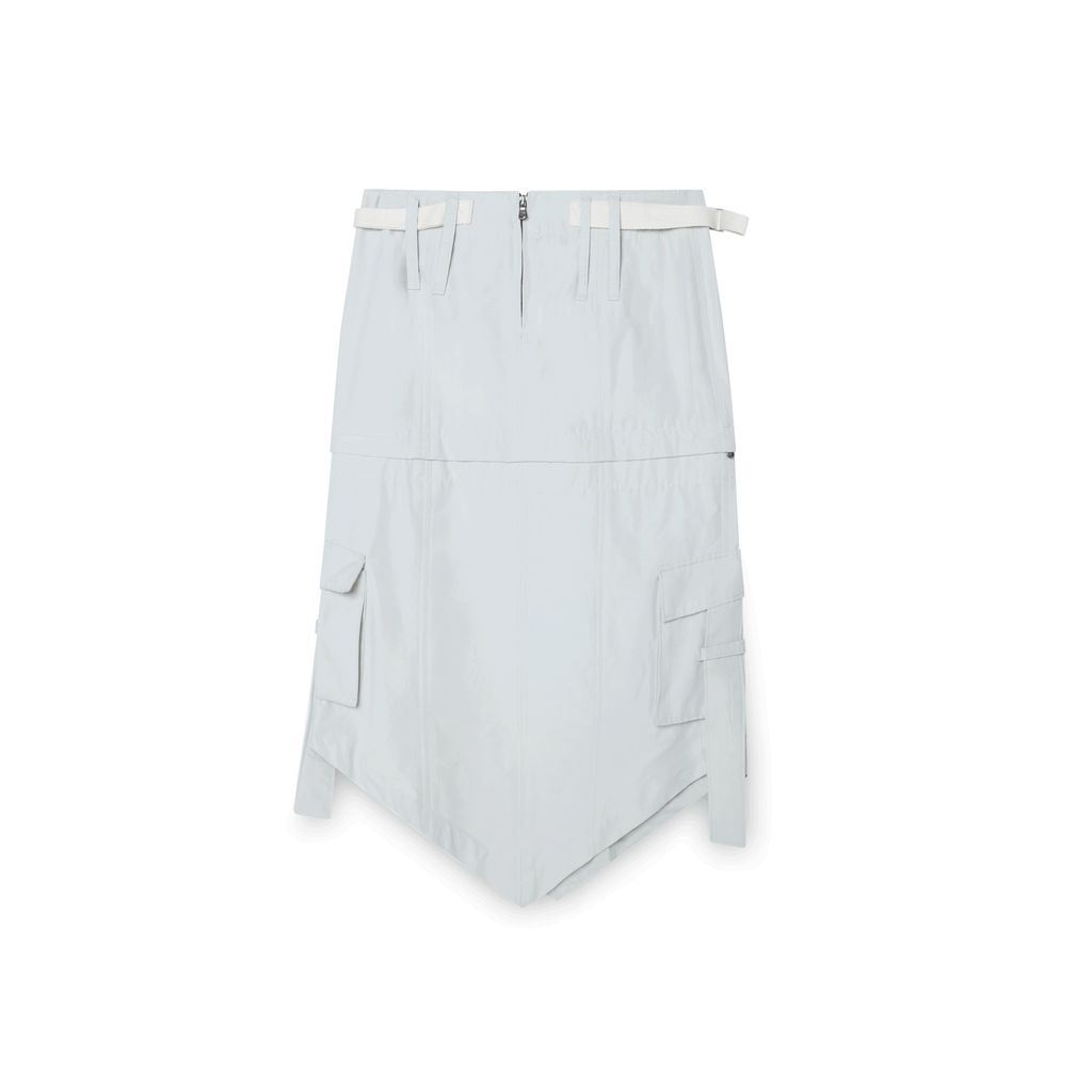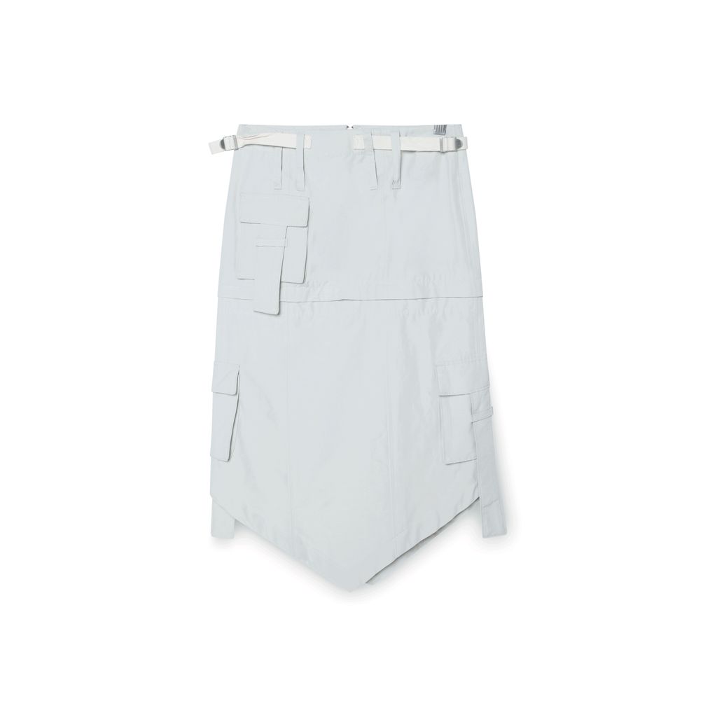 This skirt does party tricks – wear it long to show off the V-shaped hemline or zip it off to show some leg. This skirt features extra long belt loops, a center back zipper, and a left side cargo pocket. The fit is low rise with adjustable straps at the waist.
